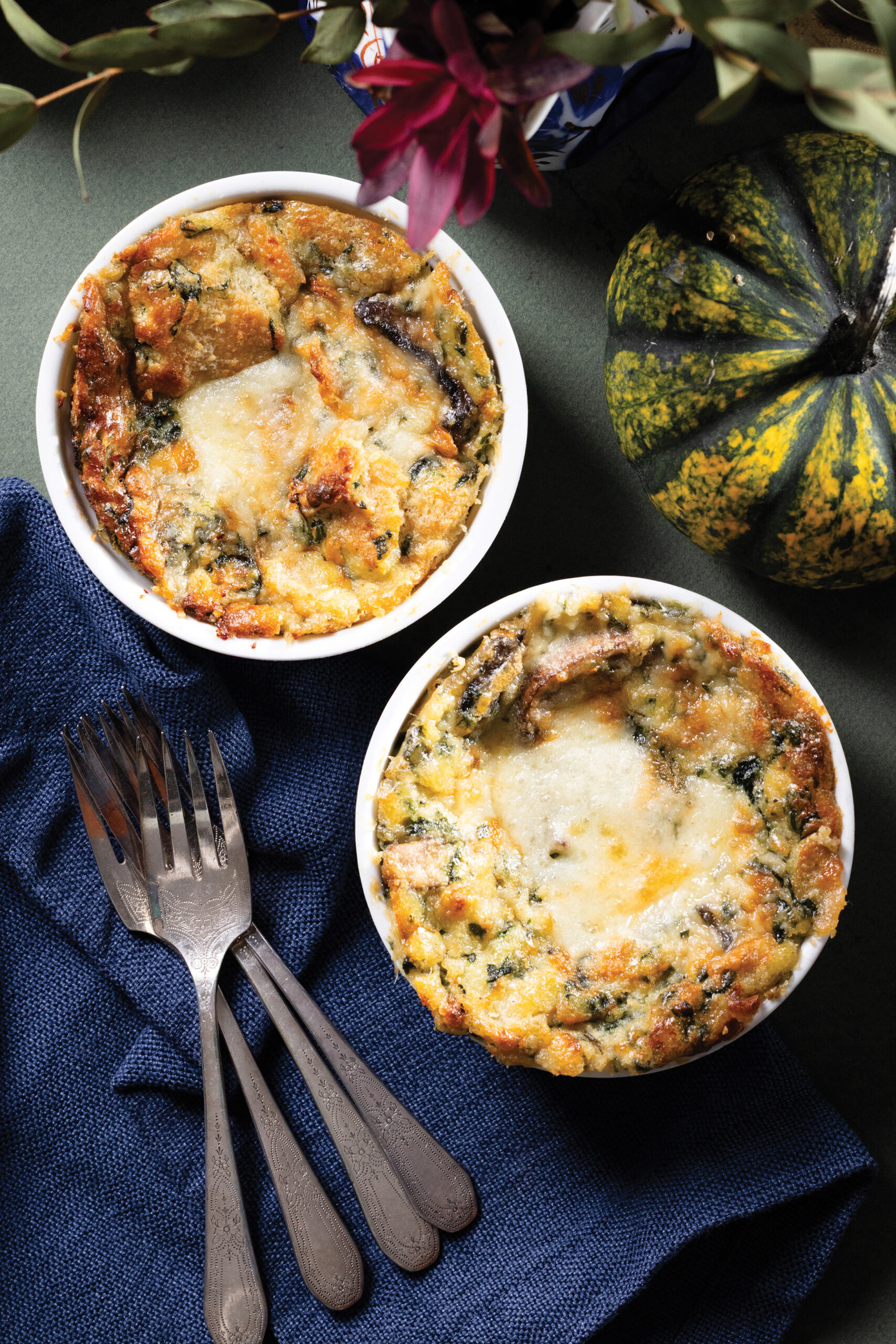 Horne staked her claim in the kitchen, taking on her self-appointed role as her family’s holiday side dish specialist. “From a really young age, I started doing the mashed potatoes and gravy, helping my dad with the oyster dressing and collard greens,” she says. “One of my favorites was my mom’s spinach bread pudding. She was always coming up with fun side dishes, and this one had spinach, garlic, gruyere — all the good stuff. Then one year, my sister brought it over and she had added sauteed mushrooms to it, and we wondered why we hadn’t been doing it like that forever!”