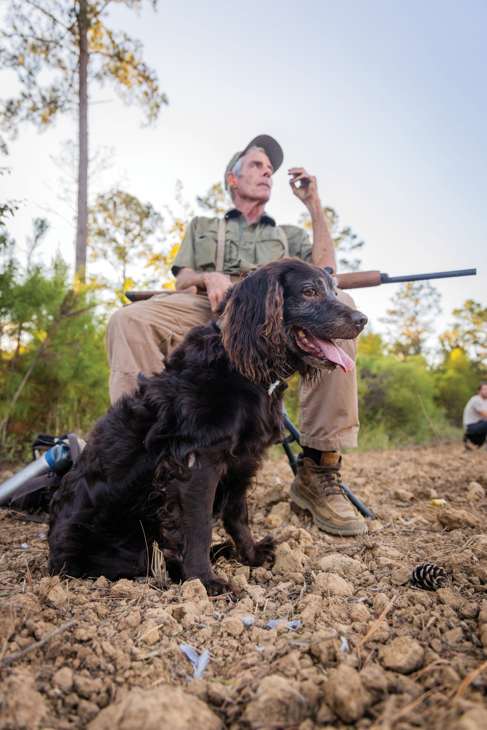 After we complete our final loop, Marc is emphatic, “Grab your gun. We got too many birds and not enough hunters.” I dutifully and excitedly obey, and make my way around the tree line to find a good spot. I end up sitting my chair next to Robert Jones, who is Marc’s third cousin and a Wilcox County native. Sitting next to Robert at attention is Miller, his 13-year-old Boykin Spaniel whose namesake is Marc’s great grandfather. Robert remarks, “It’s a miracle that this dog made it to another season. Many Boykins don’t last beyond 12 years.” Within a few moments, a few doves dive into the field from the pine stand behind us. BANG! BANG! Bird’s down. Within a few seconds, Miller responds like a seasoned veteran, finds the downed dove and enthusiastically brings it back to Robert.