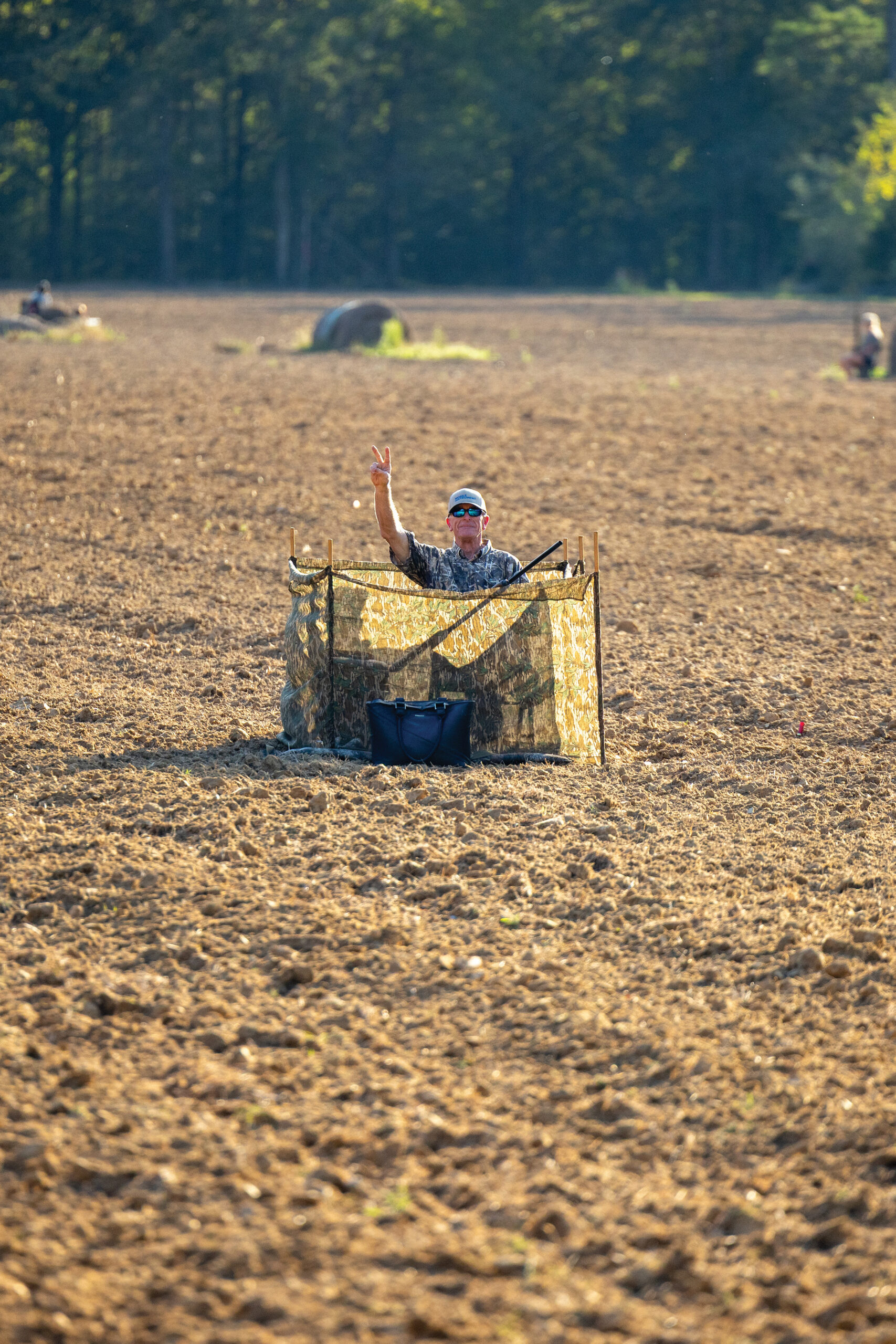 As the afternoon wears on, it becomes obvious that the birds are starting to come in. Shots are echoing off the slowly swaying pines, puffs of smoke are exploding out the barrel of the guns, and pellets begin to rain down over the freshly tilled dirt, as we all start to hear the shouts. “Low bird!” “Coming over the treeline!” It’s chaotic, yet inspiring listening to these hunters scattered throughout the fields continue to call out birds, even for other shooters. It also wouldn’t be a proper hunt without some good, ole fashioned ribbing and chest thumping. “I shot that bird – it’s mine!” “You couldn’t hit the broadside of a barn!” “How did you miss that one?!” “That’s a $25 bird if I’ve ever seen one!”