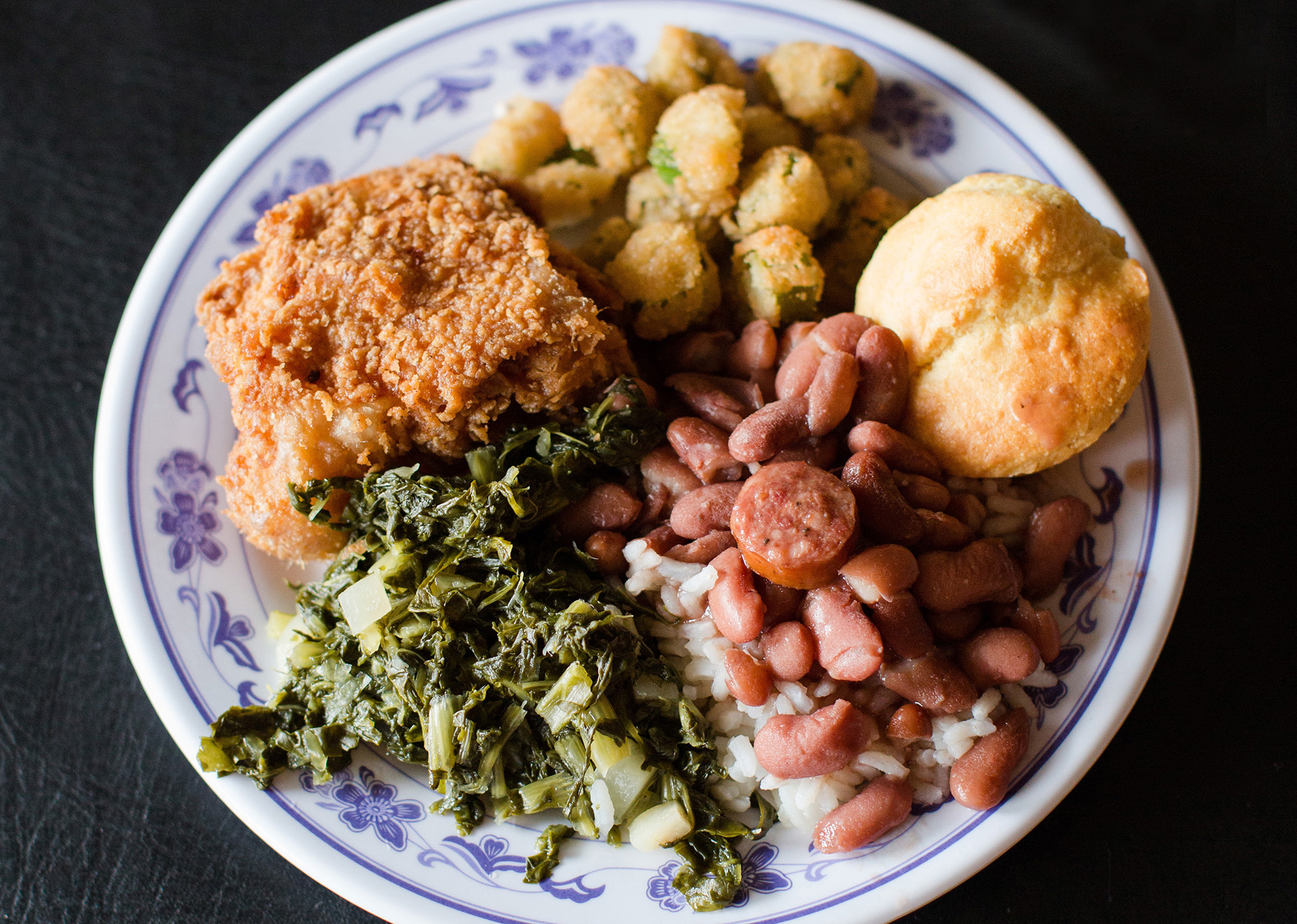 The meat and three is an embodiment of all of these cooking traditions on one plate, washed down with a glass of sweet tea and finished off with dessert.