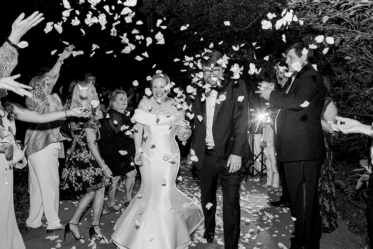 Following in the footsteps of the bride’s parents, the couple hosted an intimate, black-tie reception at the home of Anne Marie’s grandmother. Kicking off the celebration with a grand entrance led by the Excelsior band and finishing the night with a Dew Drop hot dog (one of the groom’s only requests), the bride and groom were thrilled to be surrounded by friends and family in such a memorable setting.