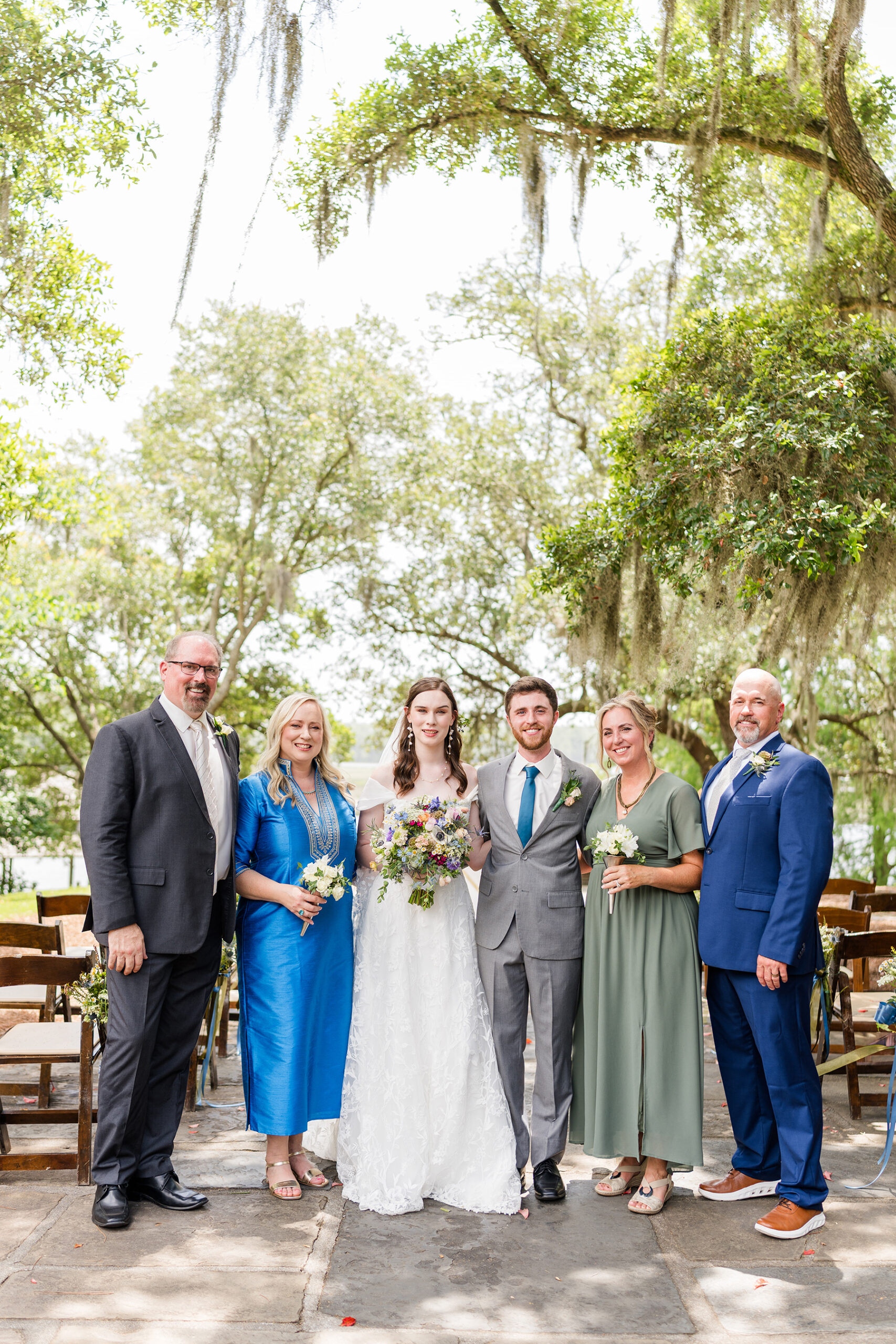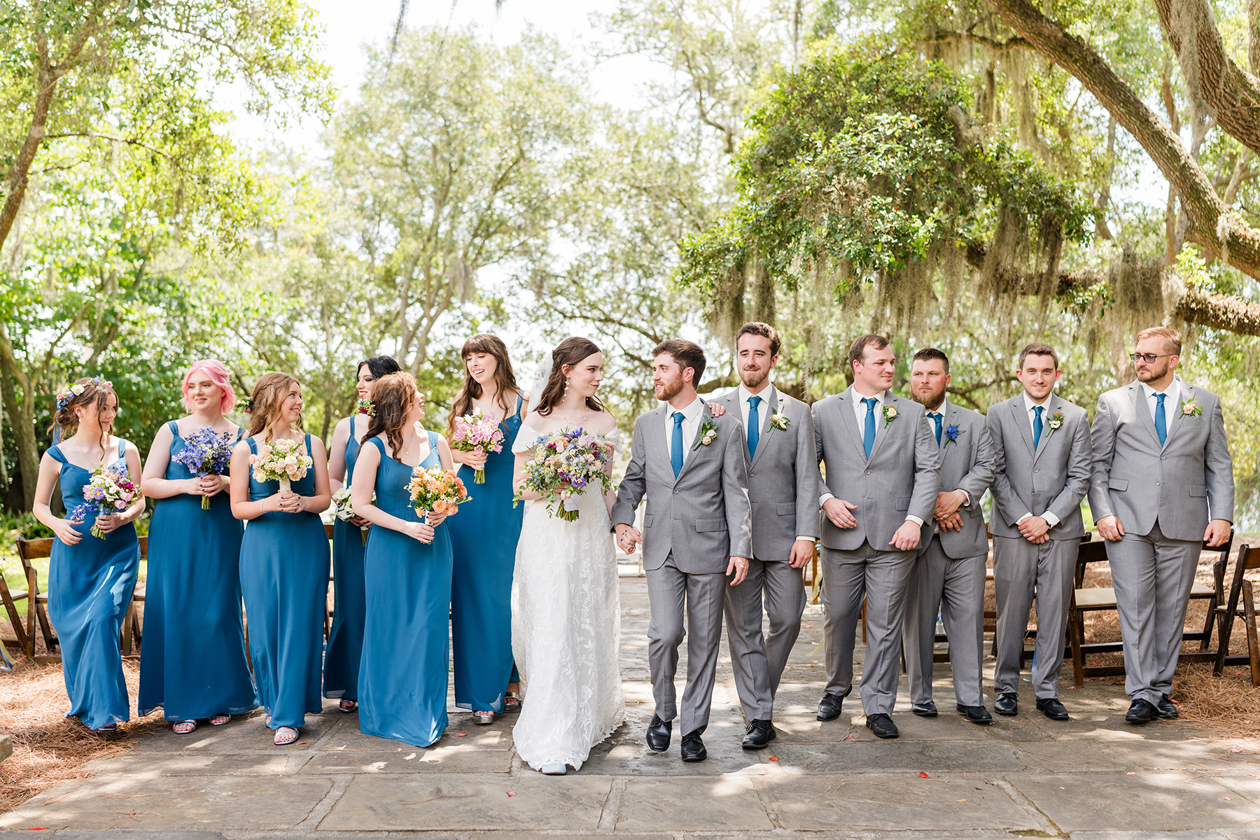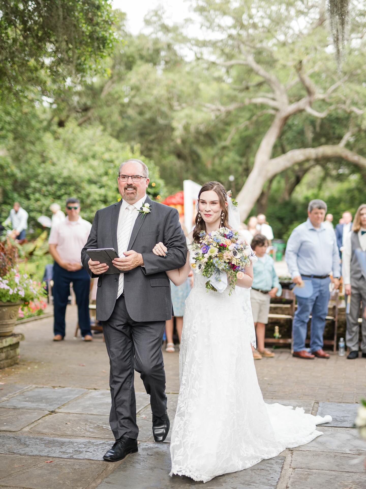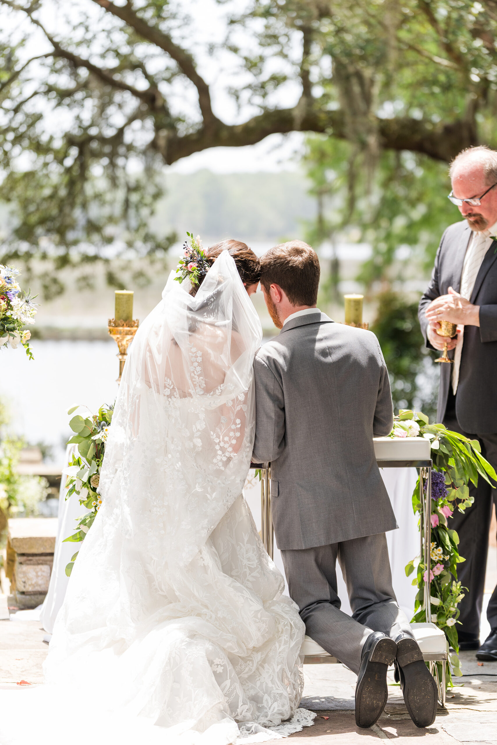 Aren and Reis’ summer wedding day brought their closest friends and family members together to celebrate. The ceremony, officiated by the bride’s father, took place in front of the Bellingrath house, decorated with lots of ribbons and wildflowers for the garden party theme. After the couple said their vows, they took communion together, and had a “blessing of the fathers,” where their fathers of prayed over them.