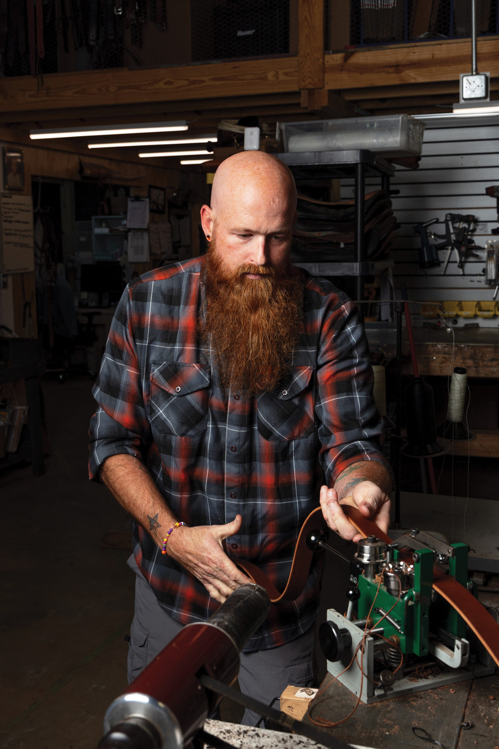 When she retired from horse training, she imagined she’d finally get some downtime. But one day, when Parrish was running behind in his shop, he asked if she could come help out for a few hours. She’d never tried her hand at leatherwork before, but she learned by doing. Seven years later, she’s still here.