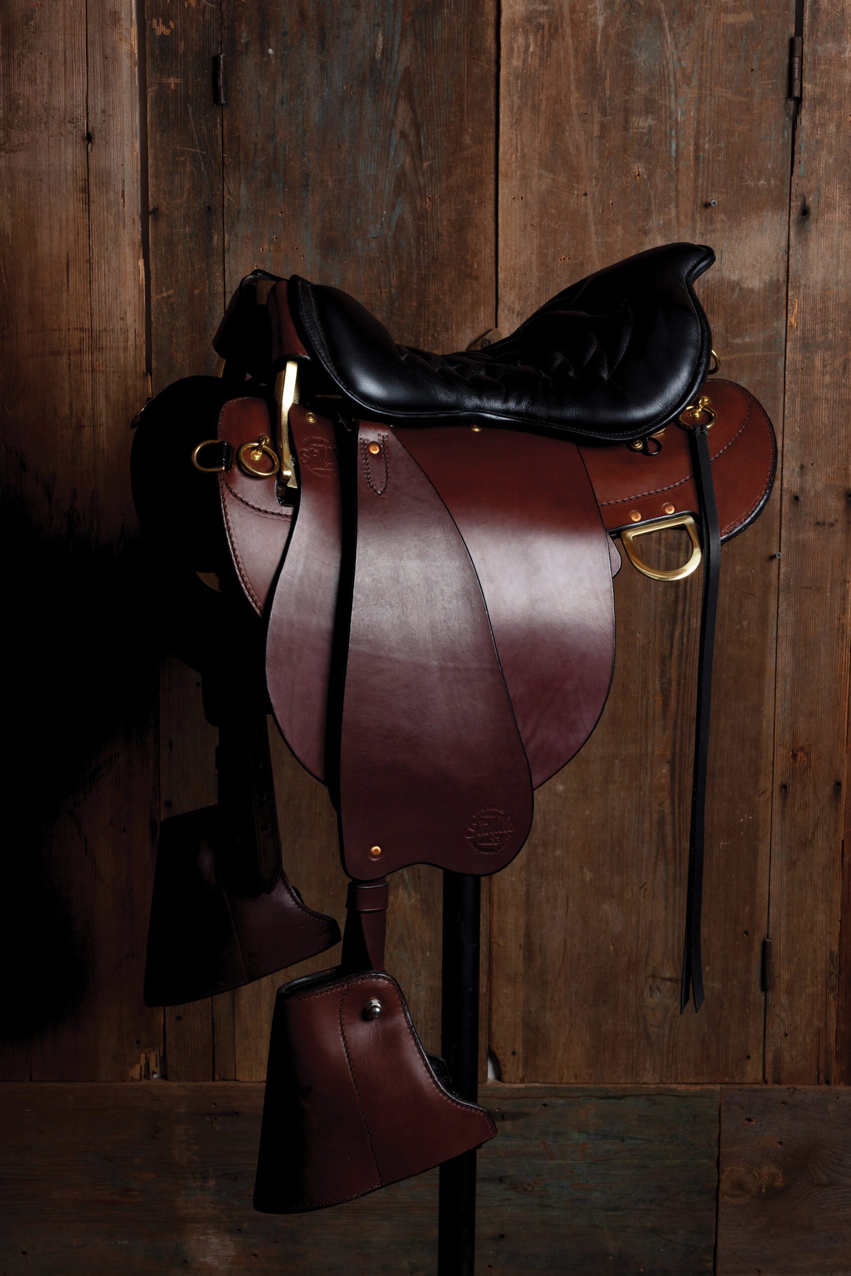 The trooper saddles that the shop specializes in are based on British military saddles from the turn of the 20th century. What makes a trooper distinct is the seat, which is suspended off the horse’s back like a hammock. It’s intended to provide maximum comfort for both horse and rider.