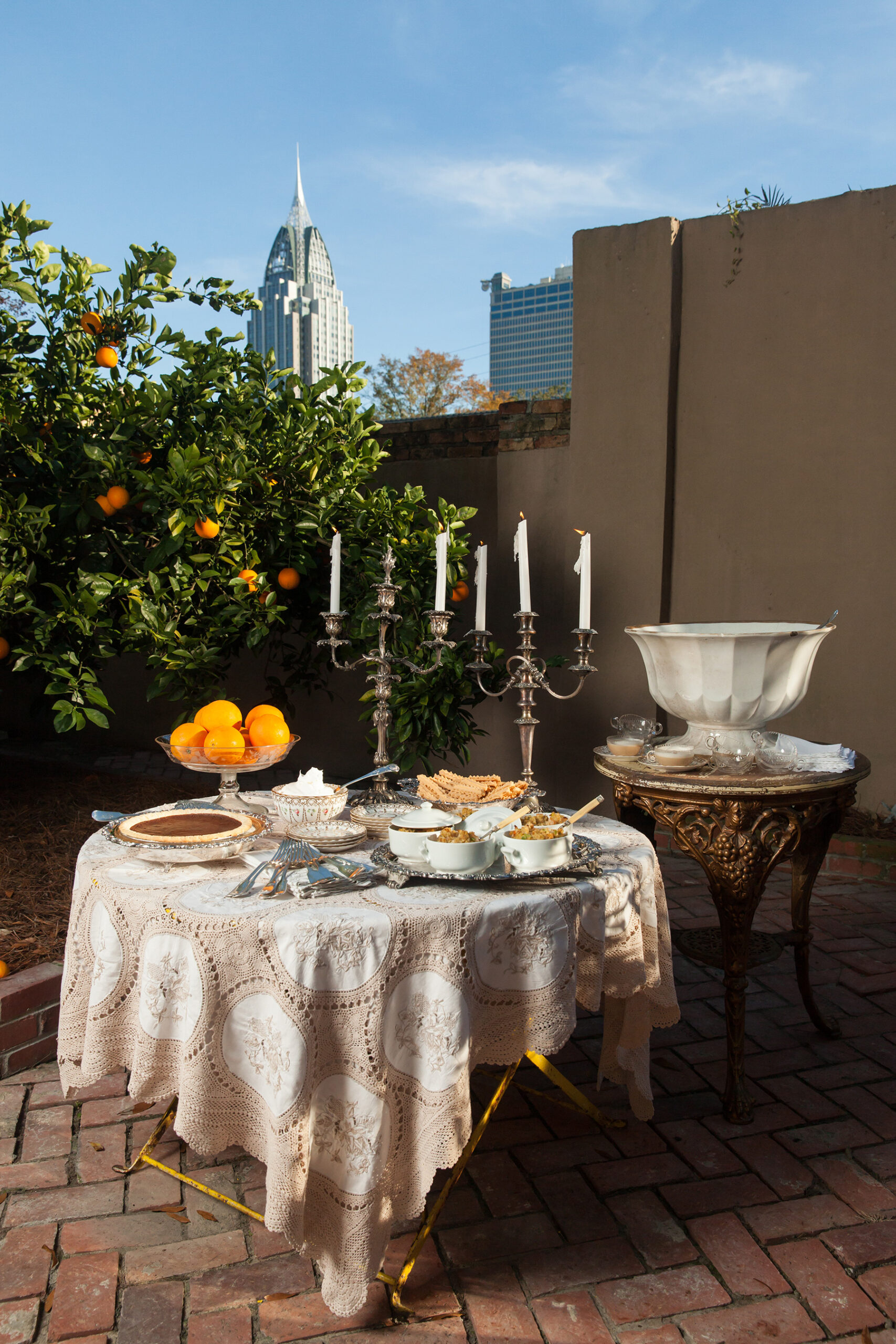 The Fat Tuesday festivities begin after Charles participates in his usual stint as a guest Mardi Gras commentator for Fox10. “Then, I go back to the house and prepare for all the people that start arriving about noon. The party will go on until midnight when we turn off the lights to begin Lent.” Their house, built in 1857, overflows with intriguing art and antiques, so the pair tends to keep the party props and extra decor to a minimum, focusing instead on food and friends. However, they do like to punctuate the party with a smattering of their spectacular pieces, such as the voluminous punchbowl, once owned by Augusta Evans, filled with a frothy beverage, and a bathtub of vintage doubloons offered as party favors.