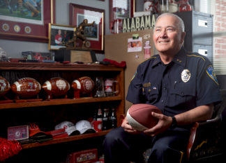 There are many words to describe Police Chief Jimmie Flanagan’s office, but “orange” is not one of them.