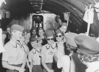 Turn back time with this photo of women in uniform at Korean War-era Brookley Army Air Field.