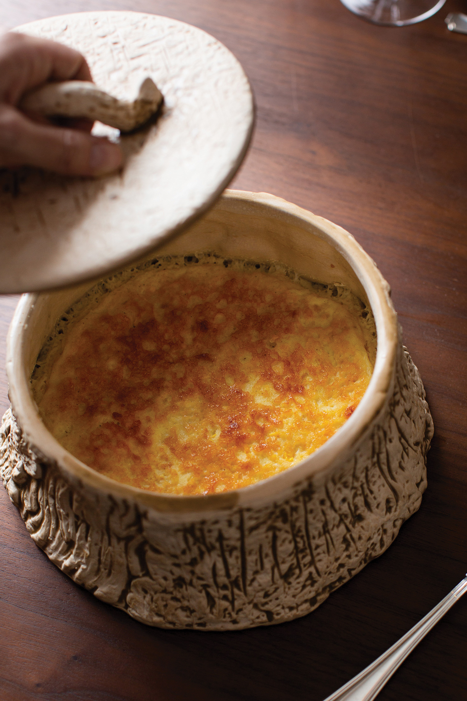 Meg Mattei makes this corn pudding recipe every Thanksgiving in her adorable tree stump pottery dish. The recipe comes from her mother’s good friend, Lee Bailey, with whom she grew up in Bunkie, Louisiana.