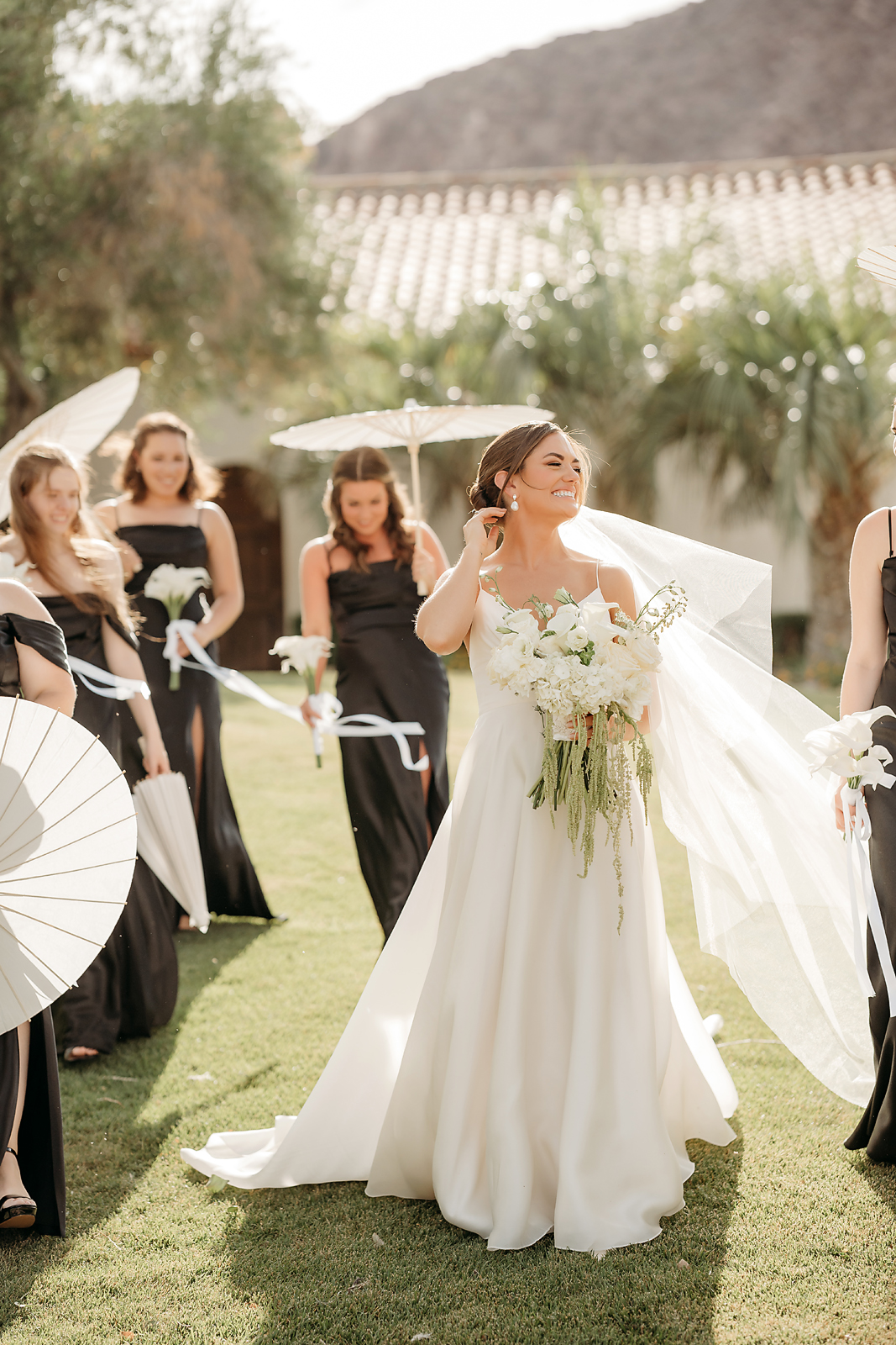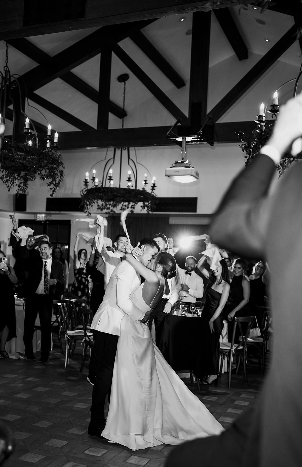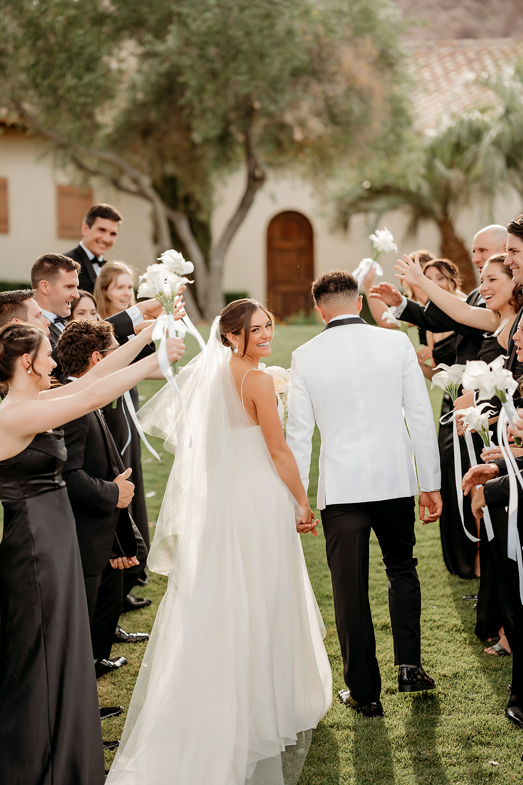 The personal touches, including custom napkins with love notes that the couple wrote each other, charmed all in attendance before the arrival of the husband and wife. After their first dance, both changed into Jordan 4s picked out by the groom for the reception. As the evening continued, guests spent the night dancing, and the evening concluded with a sparkler exit as Julianne and Jeremiah departed into the Las Vegas night.