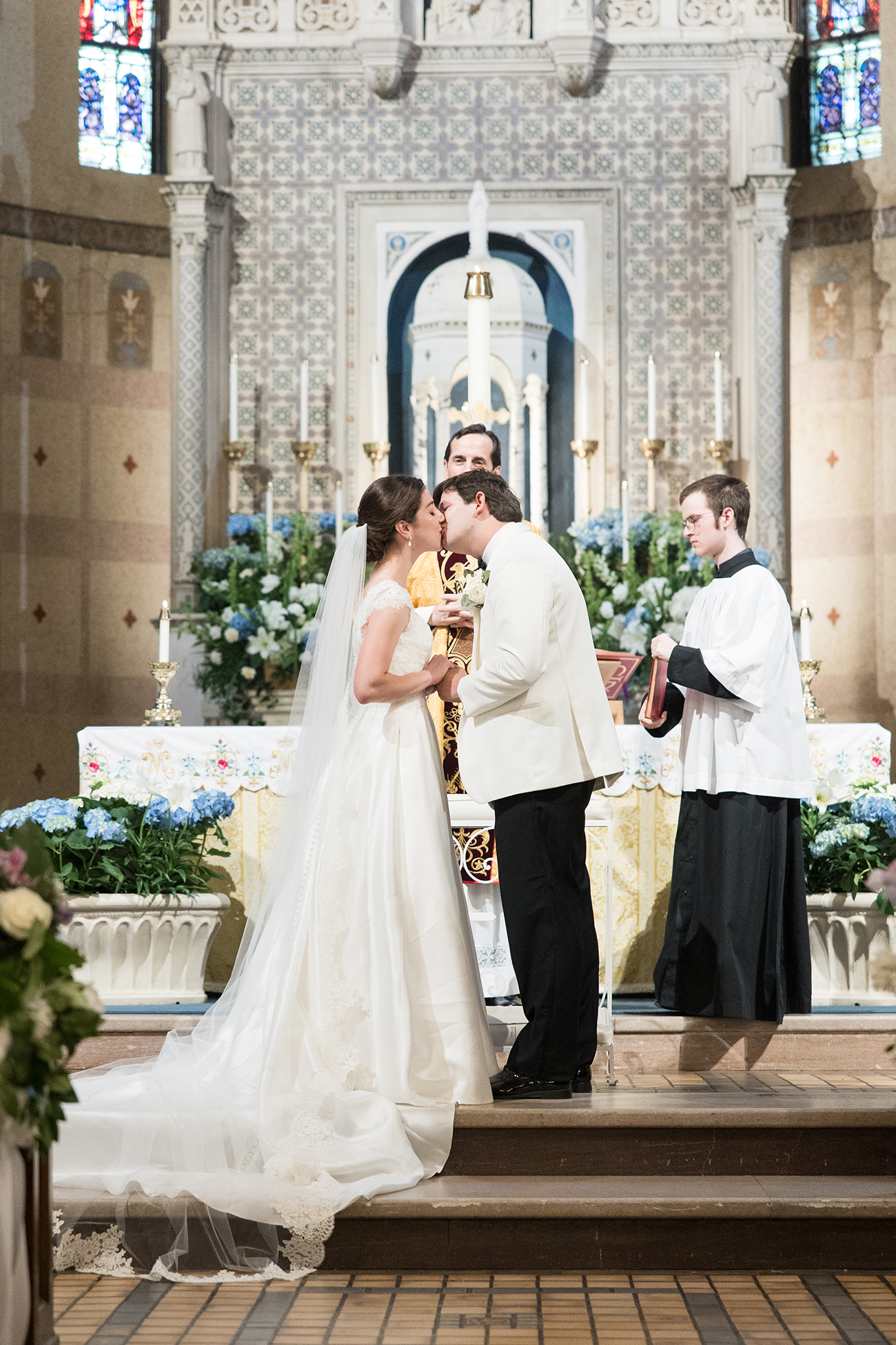 Emmie and Matthew were married on a sunny Saturday in late April. The couple filled their day with personal touches that told their story. Their wedding Mass at St. Mary’s Catholic Church included the Arras y Lazo tradition in the Catholic Church that originated in Spain that involves the couple exchanging arras (silver coins) and lazo (pearls). The grandmother of the bride brought her family’s arras all the way from Guatemala for the bride and groom.