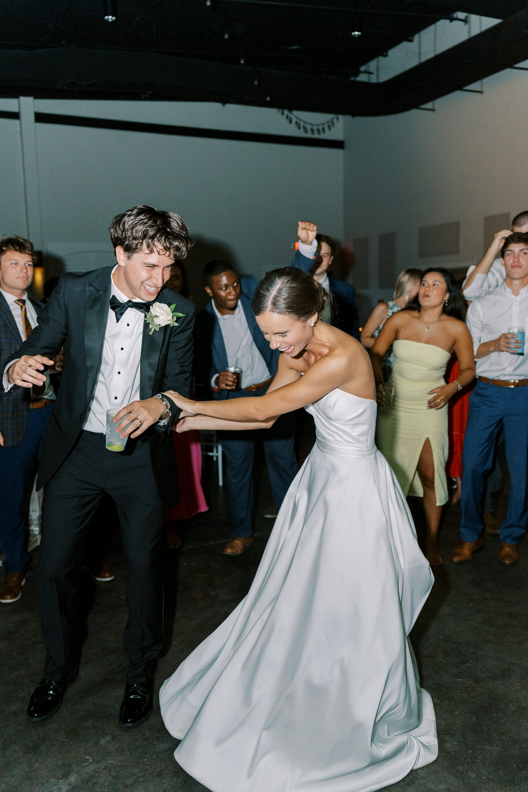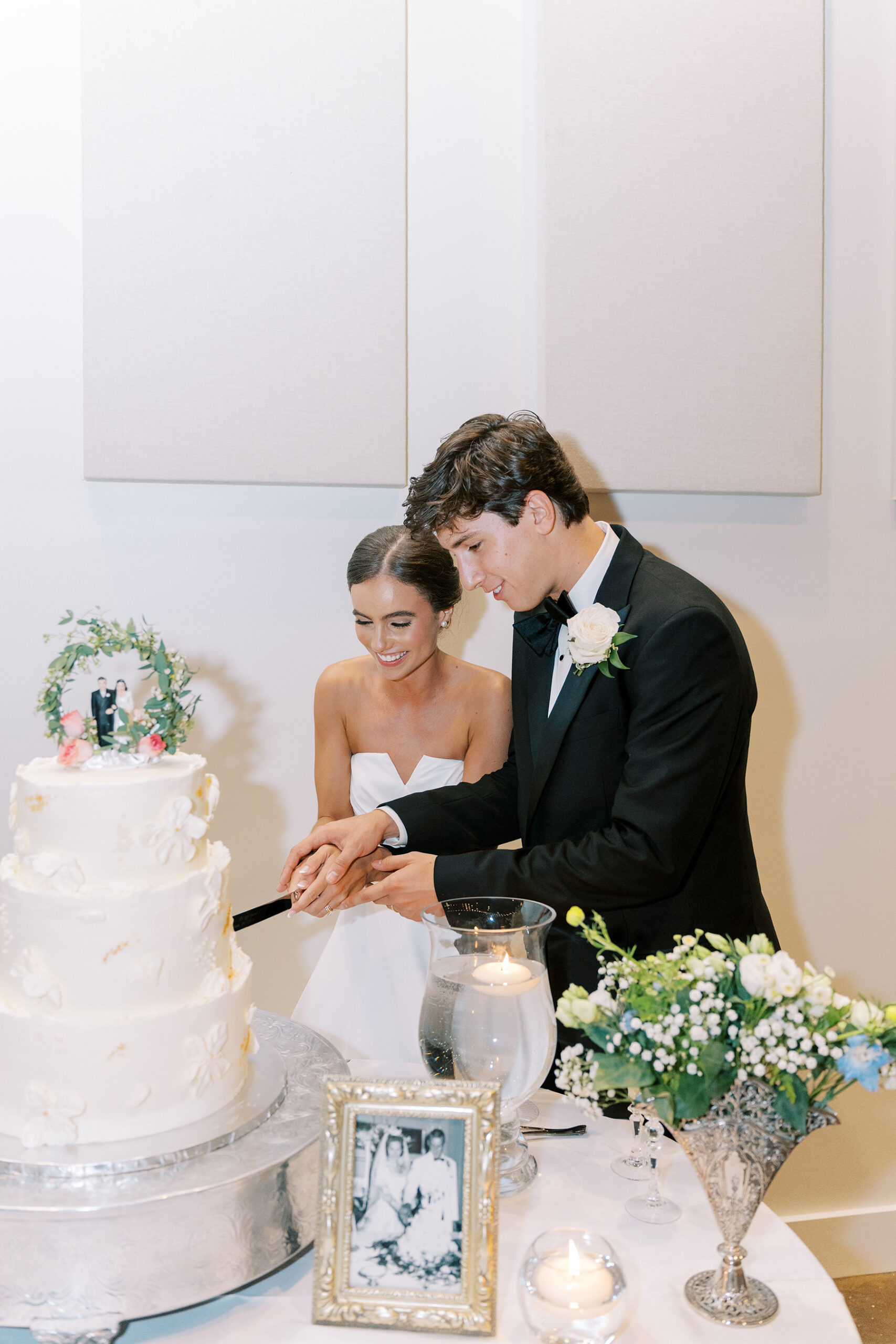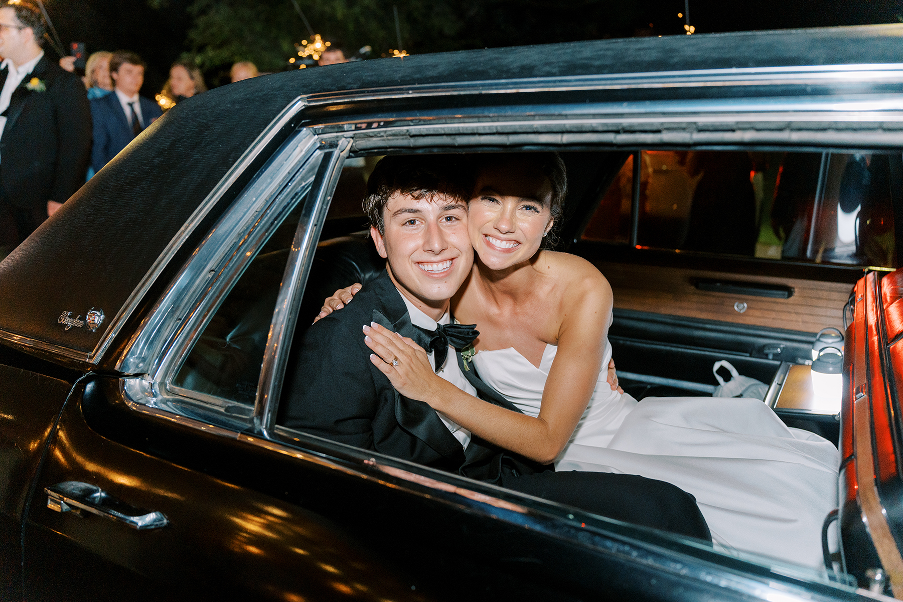 After the Mass had ended, the reception at Belforest Pointe began. The couple’s relationship originally blossomed from a swing dancing night, so naturally, the newlyweds barely left the dance floor and were joined by their loved ones as the night stretched on. The celebration came to a close as the couple dashed through the glow of sparklers and into the bride’s grandparents’ 1966 Fleetwood Cadillac.