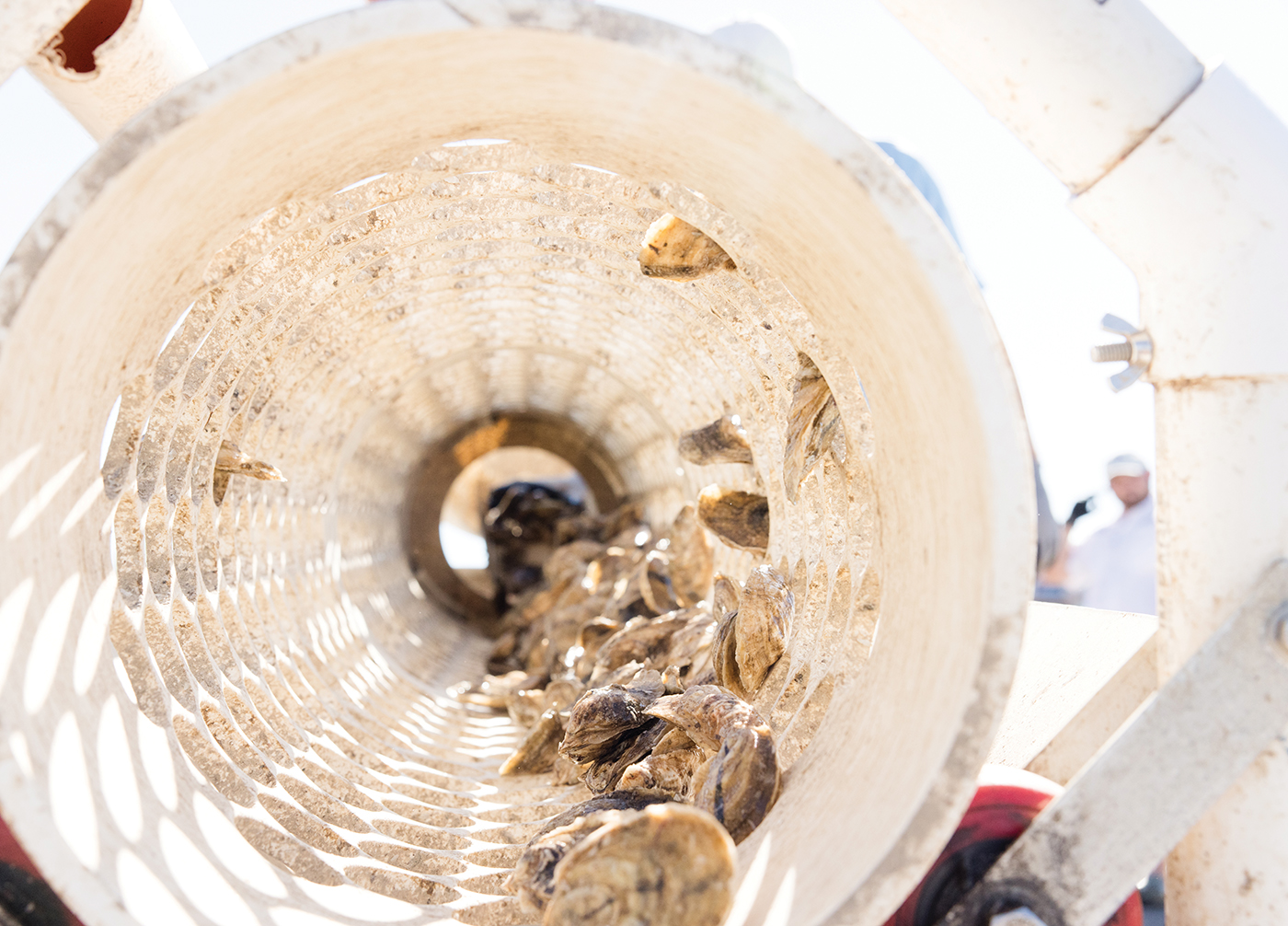“I love the perspective on this photo from Elizabeth Gelineau. She takes you right inside the oyster tumbler, and that winter light filtering through the holes is magical. We had such a fun day dressed in waders waist-deep in the chilly winter water, capturing photos and story details with the Navy Cove team and our freelance writer, Theresa Lacey! I will always remember this day, and the divine oysters we ate straight out of the bay!”