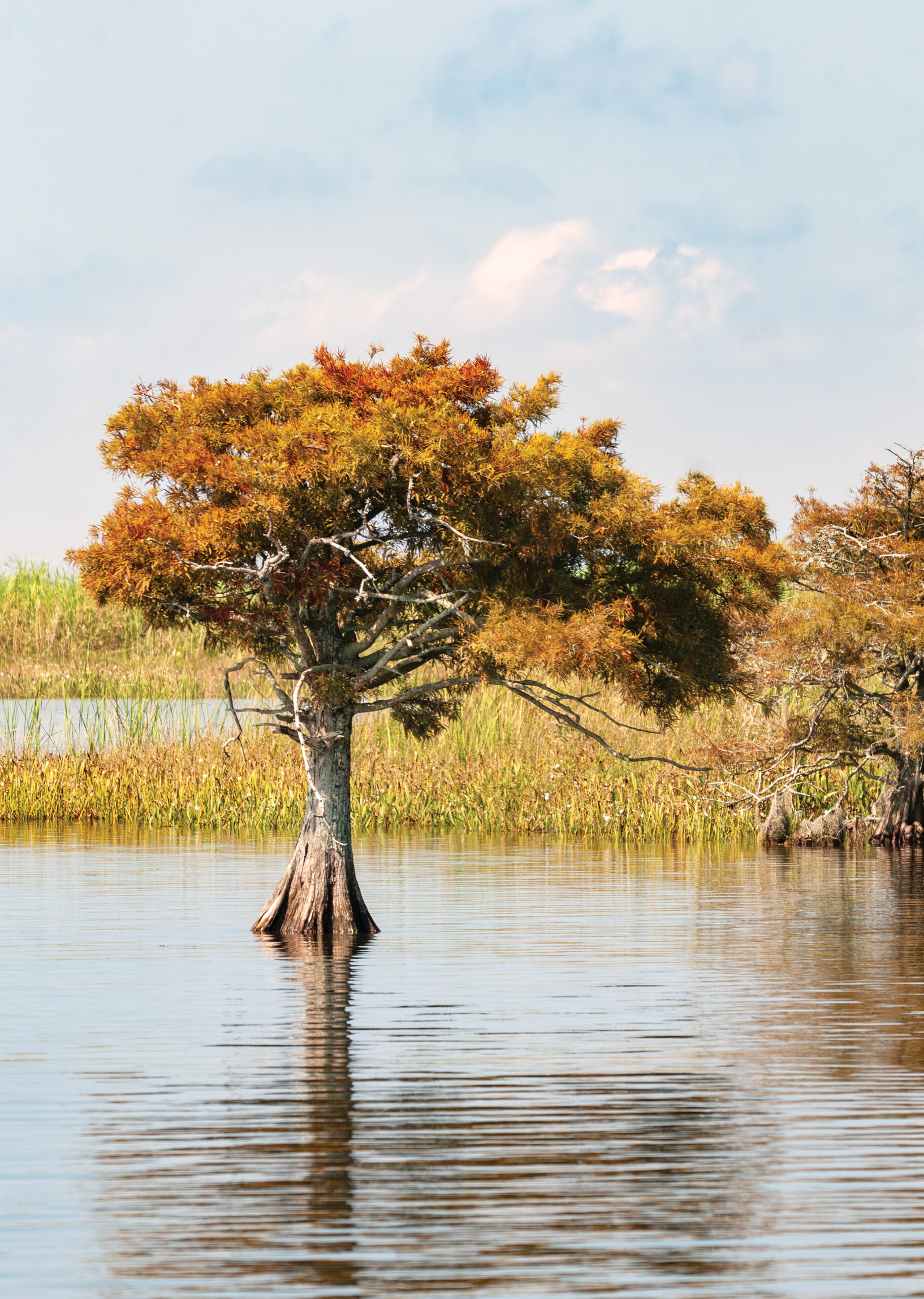 A cypress tree in its fall glory in the Mobile-Tensaw Delta