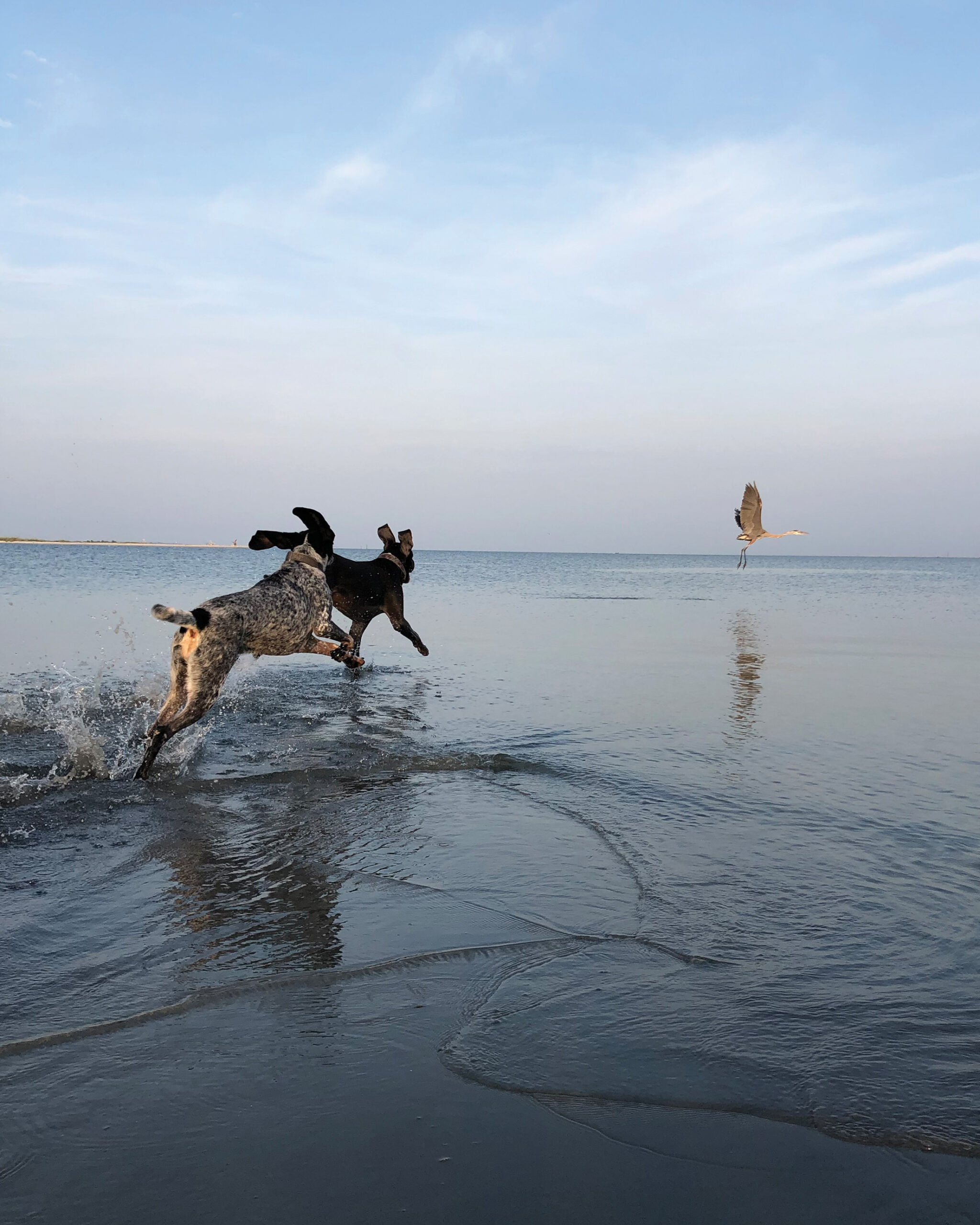 “When this image was submitted into our Waterlogged Dogs Photo Contest, I instantly knew it would be one of my favorites of the year. Not only is the photo itself stunning (blue sky, calm water, cute dogs + a bird!), but the story behind it makes it even more special. Oscar, a 6-year-old Bluetick Coonhound, was born with glaucoma and is blind. He loves being at the beach and in this photo, he’s following the lead of his friend Dexter running with joy through the shallow water.”