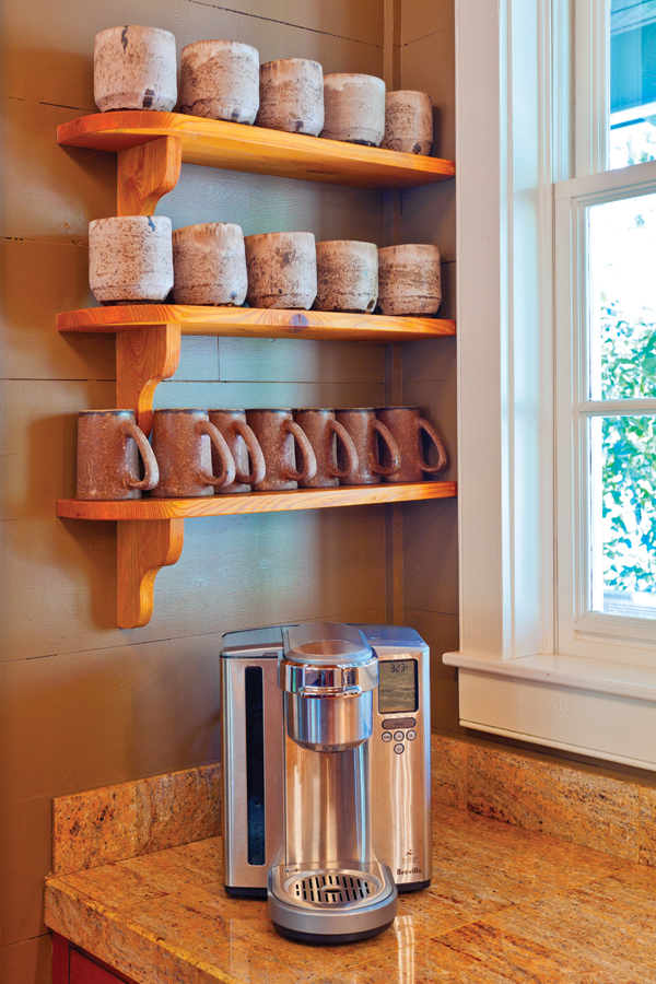 The couple’s collection of McCarty’s Pottery is displayed around the home. Handmade in the Mississippi Delta, each piece features a trademark brown line, representative of the river.