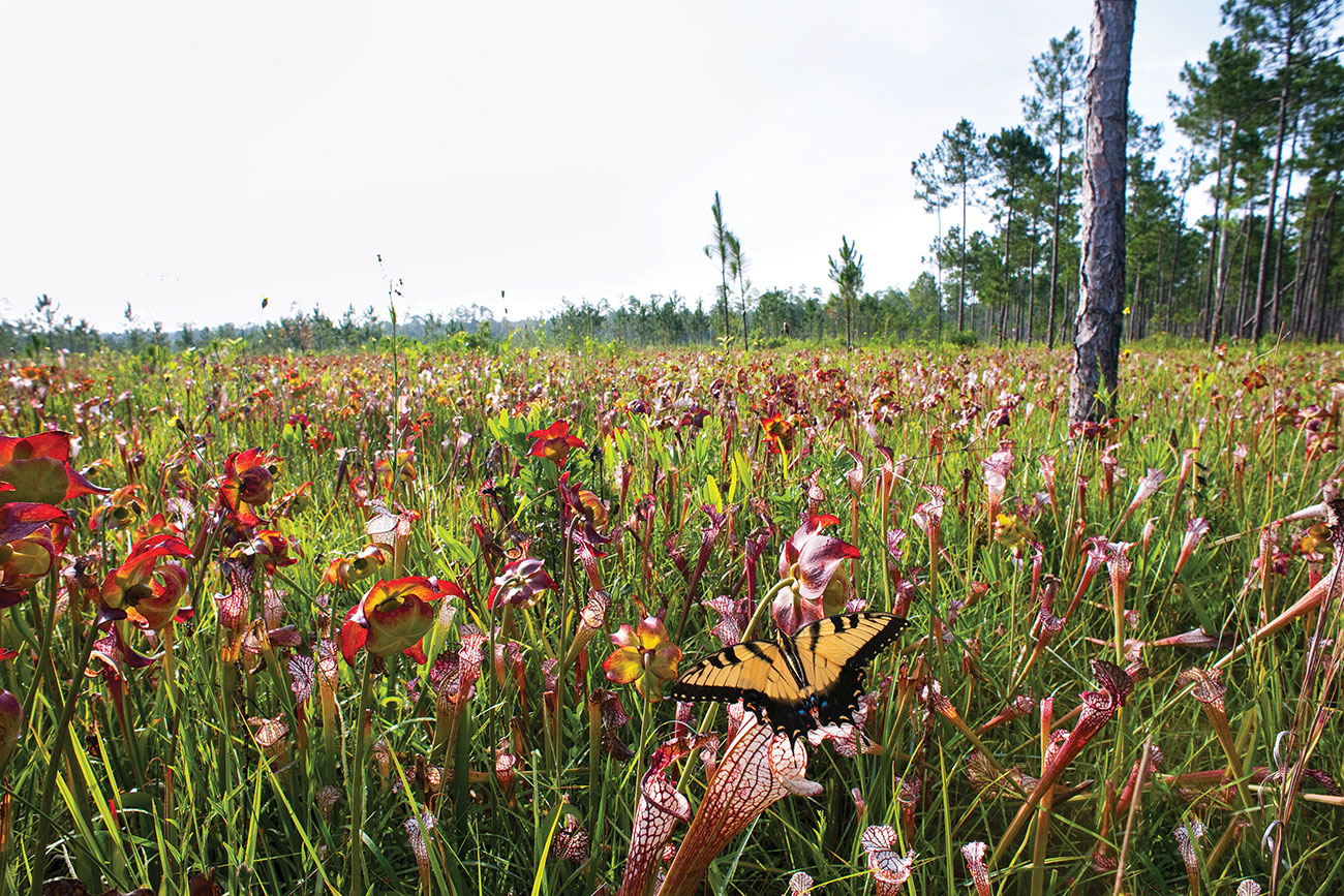 Eastern tiger swallowtail and pitcher plants, Splinter Hill Bog