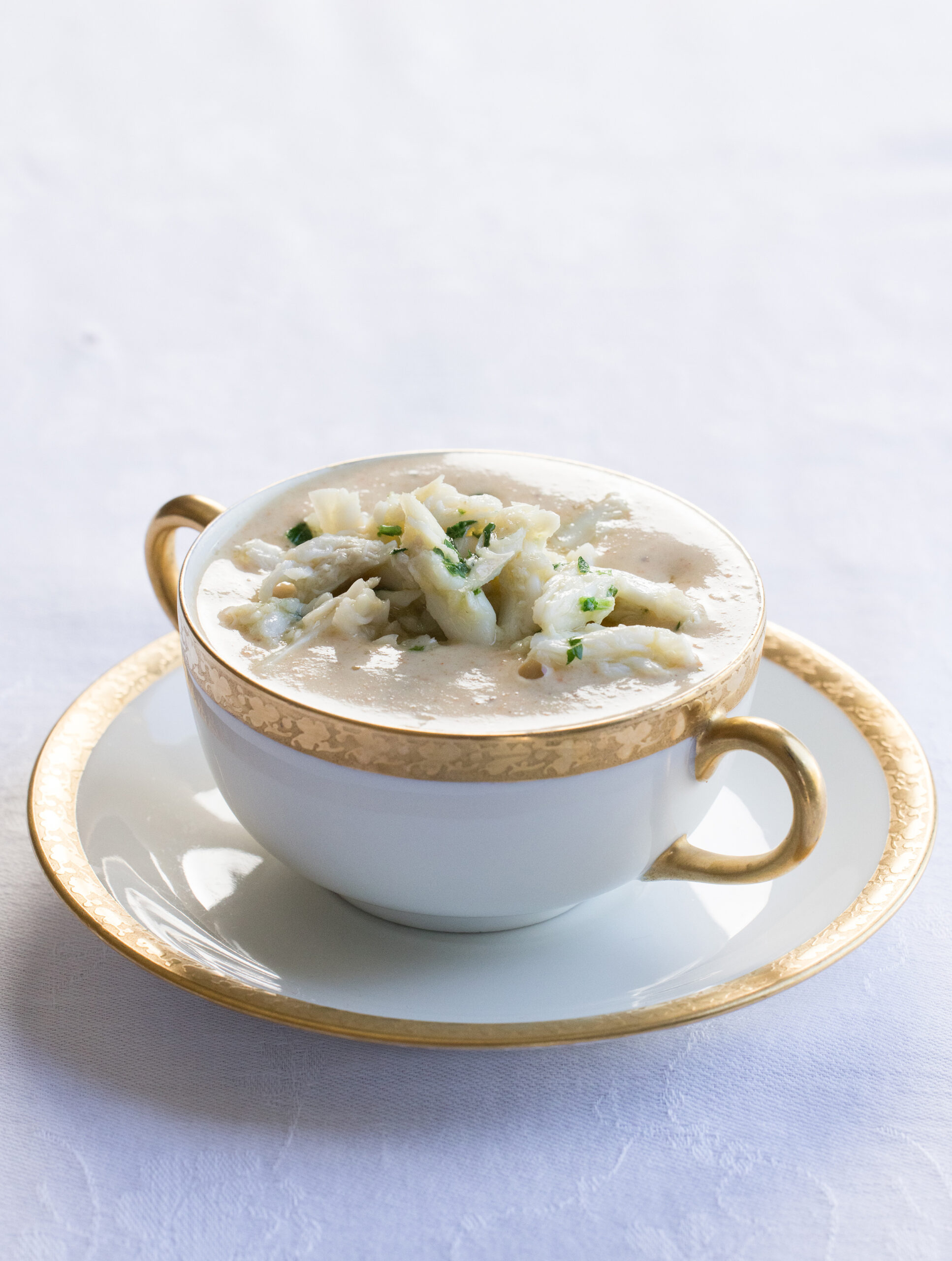 A classic bisque, thick and creamy, made with sparkling wine, oregano, thyme and fresh parsley, topped with a heaping portion of fresh local blue crabmeat.