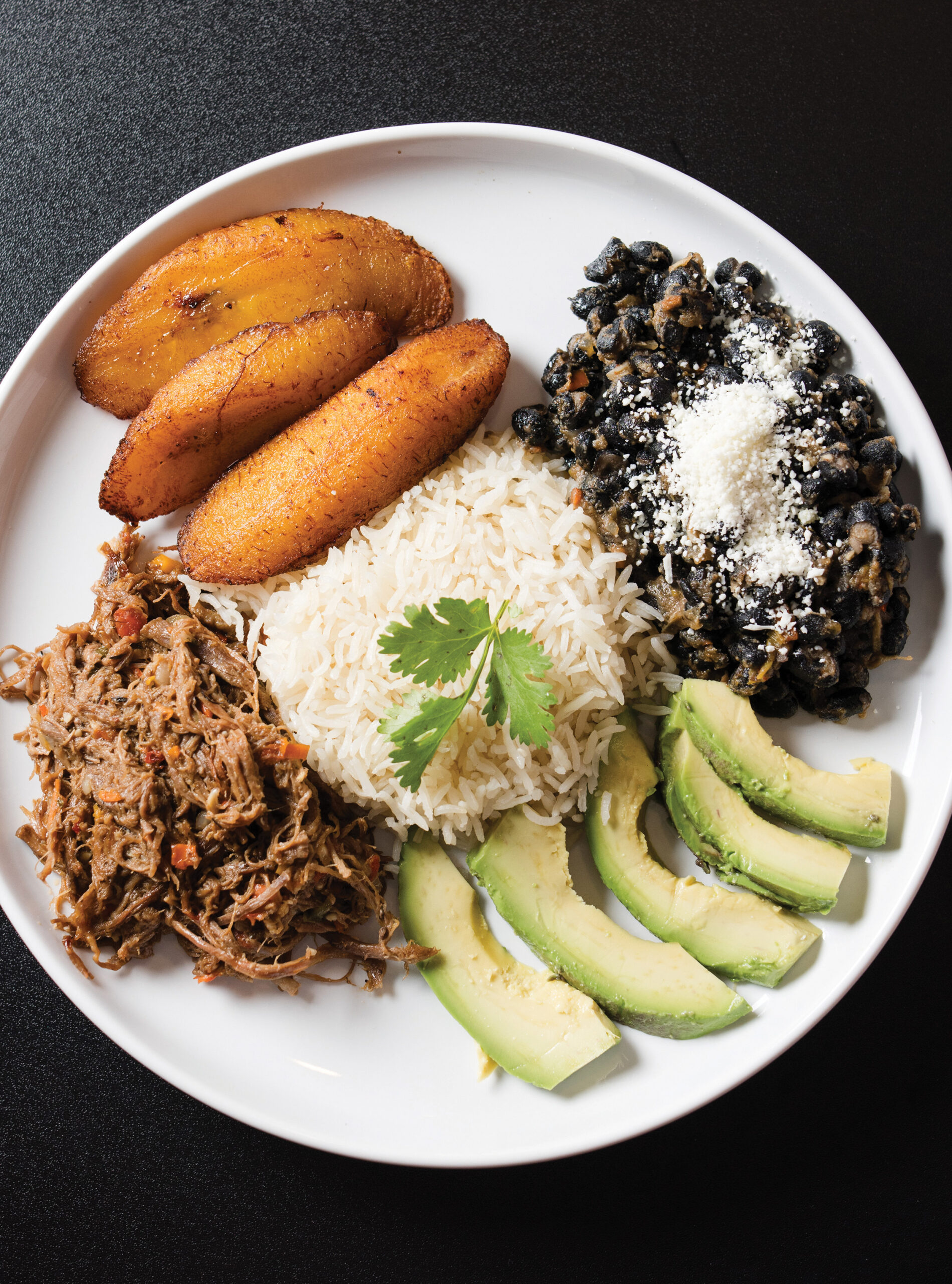 Order the national dish of Venezuela to get an authentic taste of shredded beef, black beans, white rice, plantains and slices of fresh avocado.