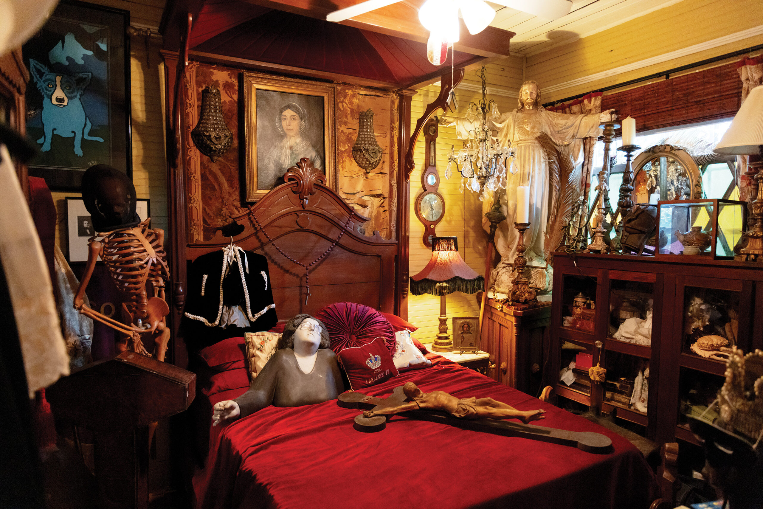 Walking through Gumbo House, among relics and museum quality pieces, many from the early 1800s, one instantly realizes this is far from the above mentioned “cookie-cutter house.” At every turn, life-size human statues, some centuries old, are waiting. You look at them and they look at you which can be somewhat unsettling.
