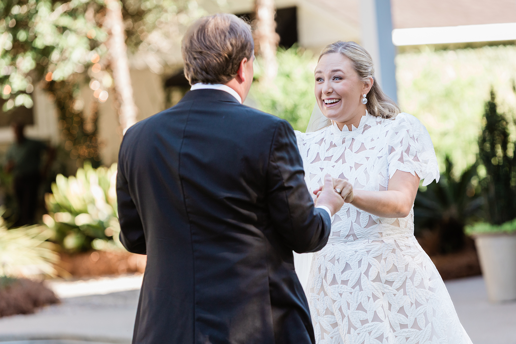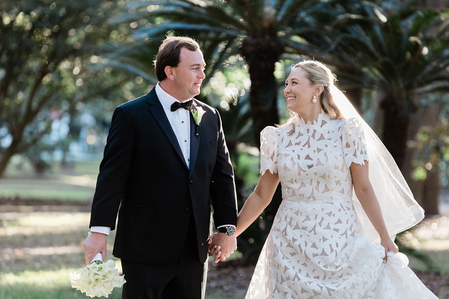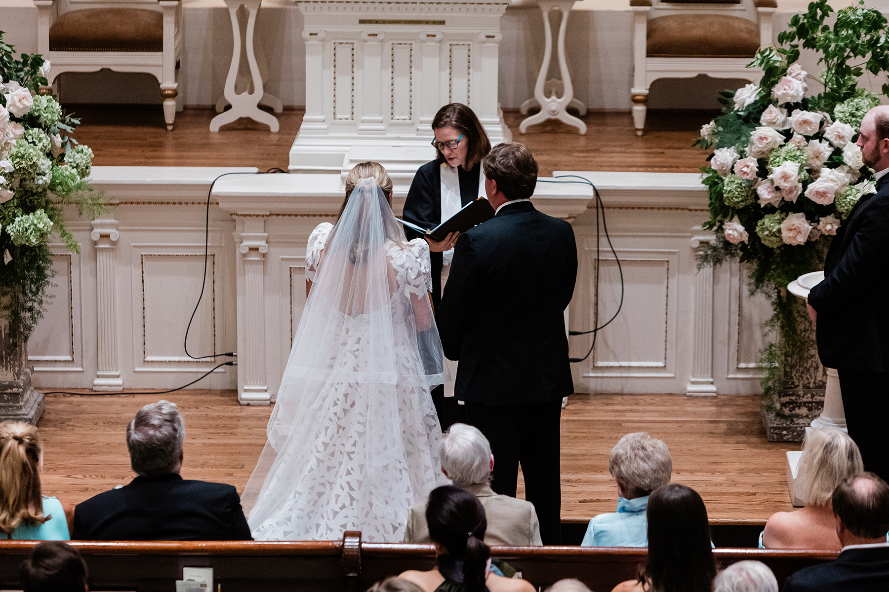 Sarah Catherine and Joey’s wedding was a celebration of love, family and special moments from their lives. The bride started the morning at her parents’ house, where her bridesmaids got ready with her. The wedding party then took photos in Washington Square Park; the bride said the moment was surreal, standing in her wedding dress remembering how she had played in the park as a little girl. The ceremony occurred at the bride’s childhood church, Government Street Presbyterian. The tunes of a gospel choir punctuated the happy occasion as a crowd of family, friends and loved ones watched the couple exchange vows.