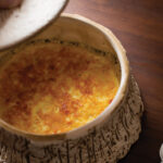 Meg Mattei makes this corn pudding recipe every Thanksgiving in her adorable tree stump pottery dish.