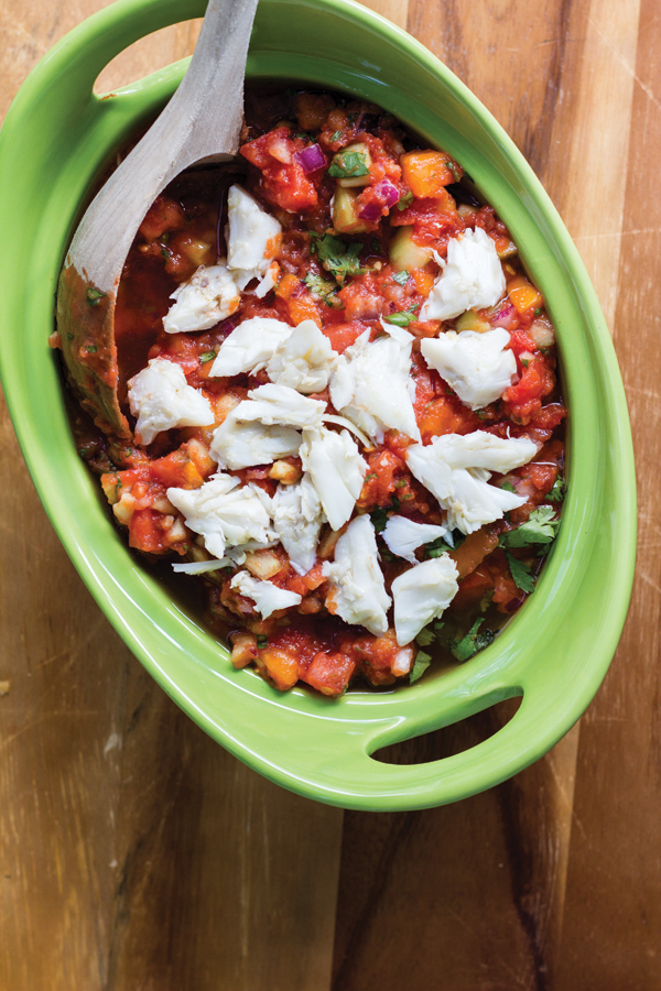 Fresh lump crabmeat or shrimp give this cold soup an extra bit of Gulf Coast flair.