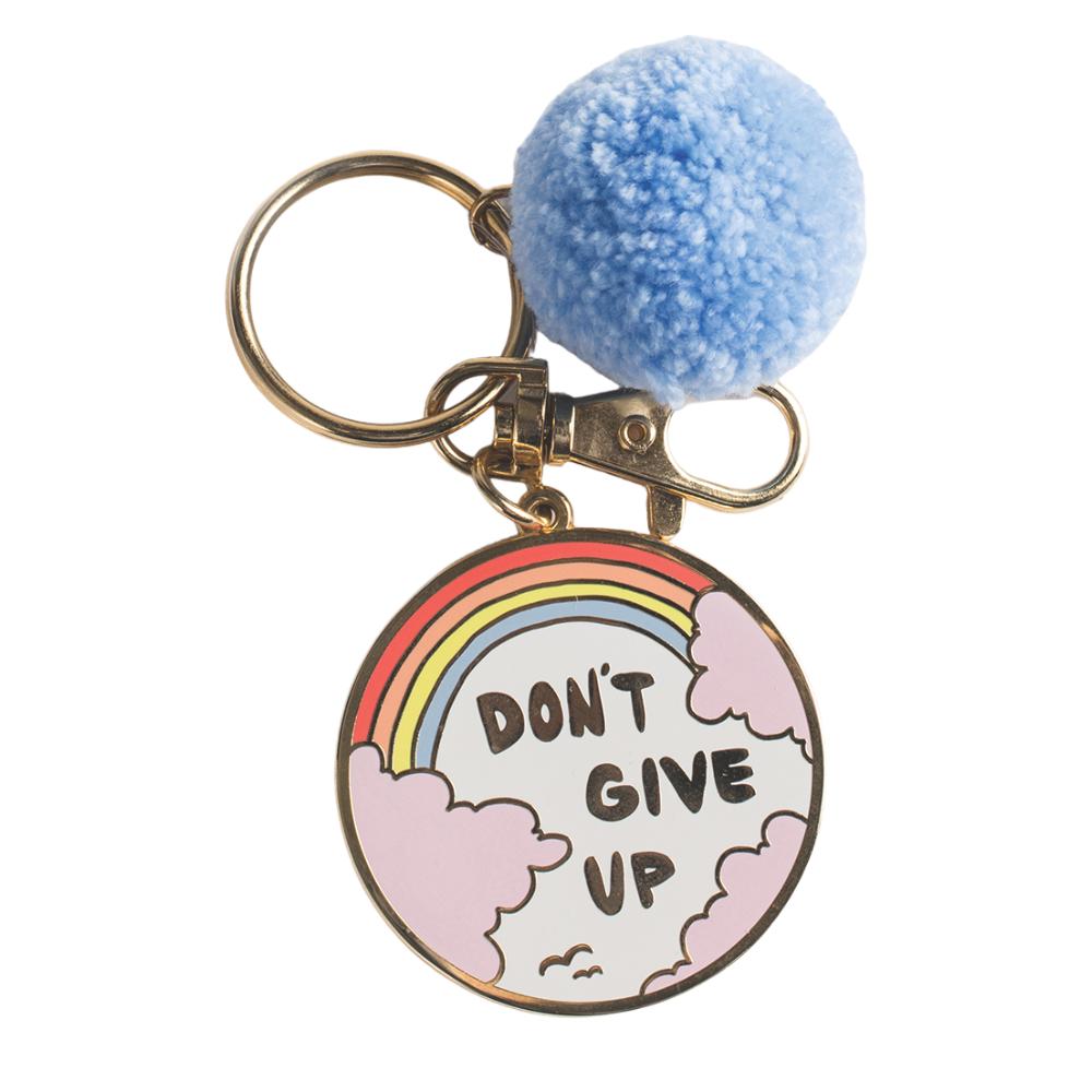 Don’t give up pom-pom keychain • $22, Black Door Studio