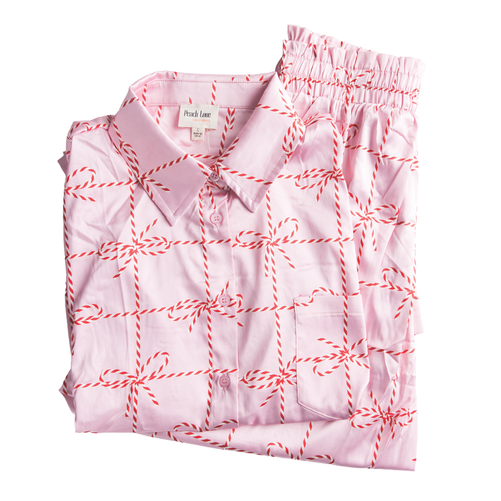 Pink Candy Cane Satin Pajama Set • $89, The Garage Studio