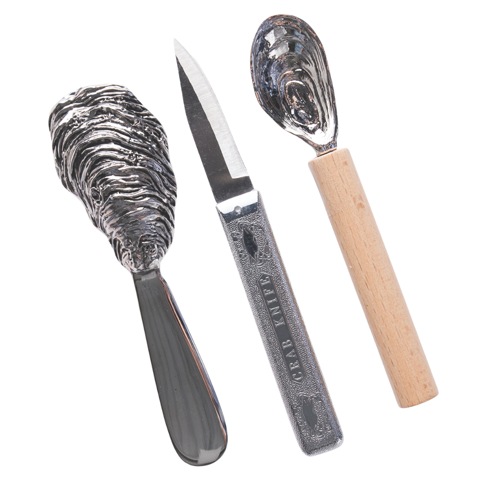 Oyster spreader • $12, Oyster Knife • $16, Oyster Spoon • $12, The Garage Studio