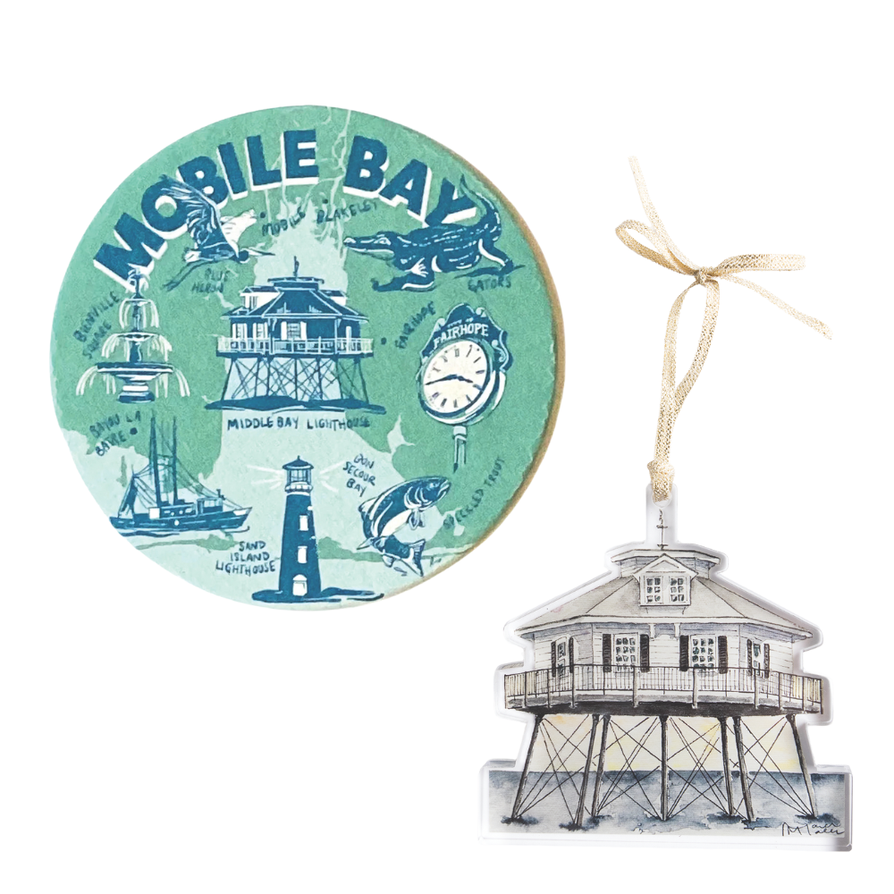Mobile Bay paper coasters • $18 for set of 12, Mobile Bay Shop